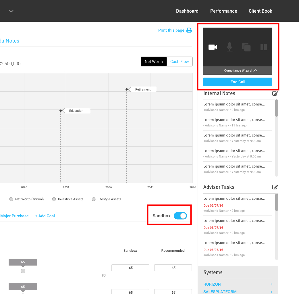 I knew from the beginning that we needed to build in a way for clients to talk to their advisors live on the platform, as that was the whole basis of this project in the first place, so that cannot be the big idea, nor should it be (video conference is a common thing nowadays).