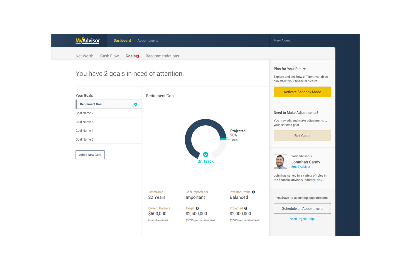 A client-facing dashboard and an internal advisor dashboard were created as part of the MyAdvisor product.