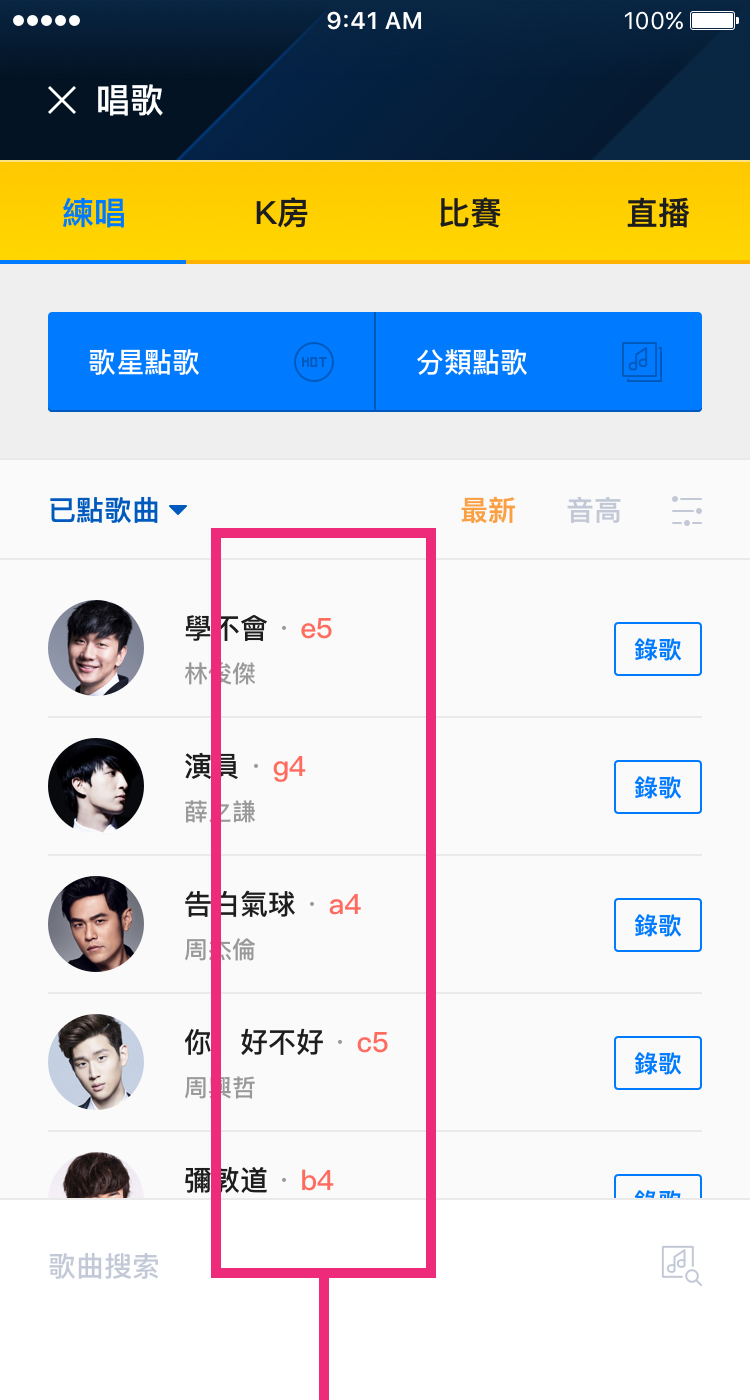 The other 3 modes, train, KTV, and perform are in place to effectively help users develop and improve—gettting them to the point where they feel they are ready to compete.